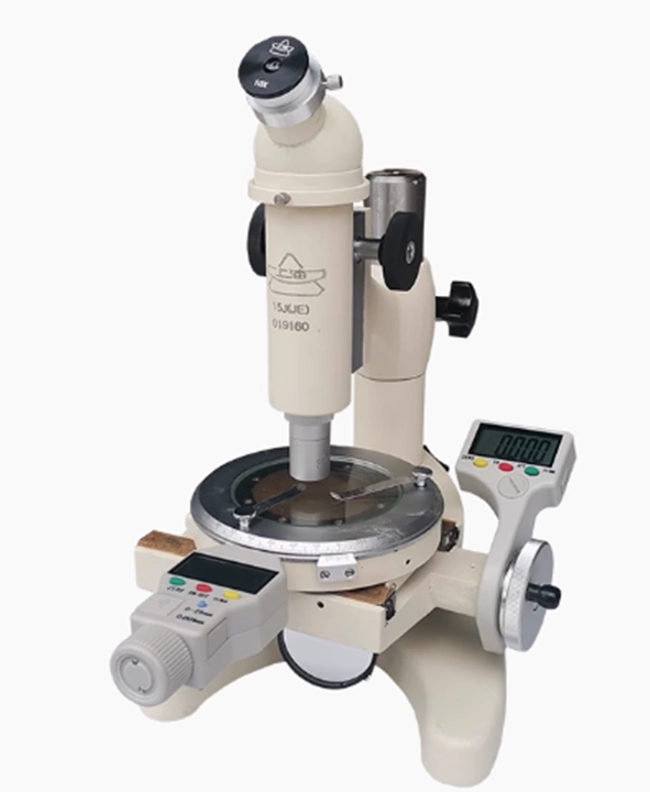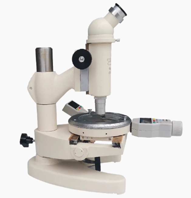 测微器分度值:0.01mm 测量台刻度盘分度范围:0˚-360˚ 测量台刻度盘之分度值:1˚ 测量台刻度游标读数分度值:6′ |
